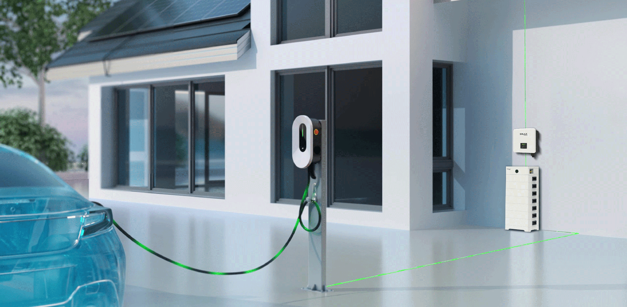 With the rise in electric vehicle (EV) adoption, SolaX's PV + ESS + EV Charging solution offers a comprehensive, sustainable way to power your home and your EV. Prioritizing 100% green power, it allows you to charge your electric vehicle using solar energy or stored energy, lowering your charging costs while reducing your carbon footprint.